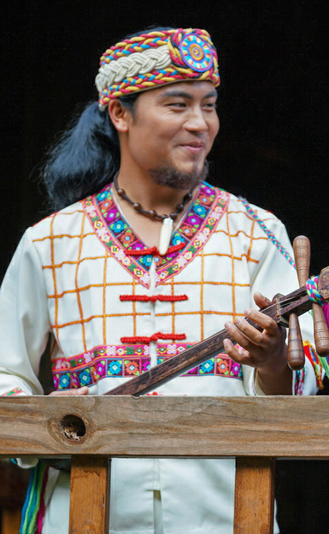 佤族人口約36萬,主要聚居在云南省瀾滄江南段以西的阿佤山區(qū)。佤族寨位于“翠漪洲”東南角。寨內(nèi)分布有茅草頂?shù)母蓹谑浇ㄖ骸⑴n^廣場(chǎng)、神靈廣場(chǎng)、司崗里石雕以及糧倉等。牛頭廣場(chǎng)是佤族古老的剽牛活動(dòng)場(chǎng)所,場(chǎng)正中的牛角為佤族的寨樁,廣場(chǎng)前的兩個(gè)石人分別為佤族的男性和女性祖先。神靈廣場(chǎng)表現(xiàn)了佤族萬物有靈、靈魂不死的自然崇拜觀念。場(chǎng)中兩個(gè)石人雕像分別為佤族最崇拜的“木依吉”和“阿依娥”。佤族木鼓舞節(jié)拍鮮明強(qiáng)烈,...